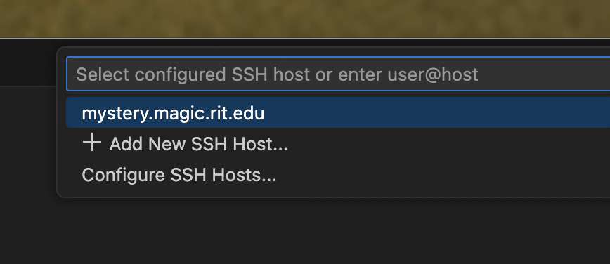 Now try logging into the machine, with: "ssh 'mystery.magic.rit.edu'"