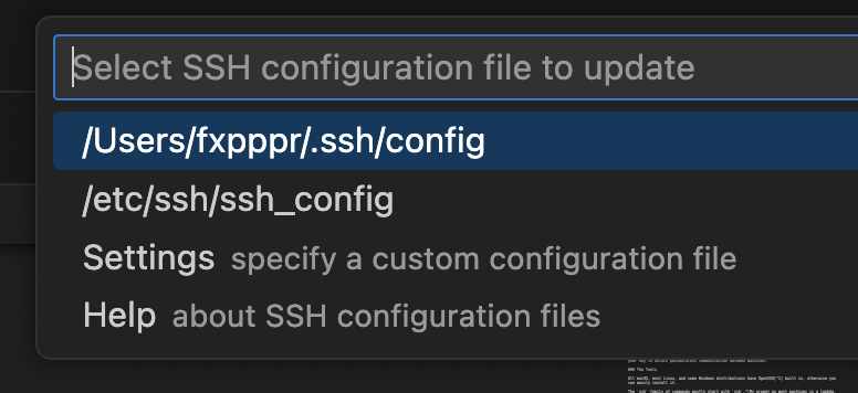 configuration file to put it in. Unless you have specific reasons, you can just put it in your default ~/.ssh/config