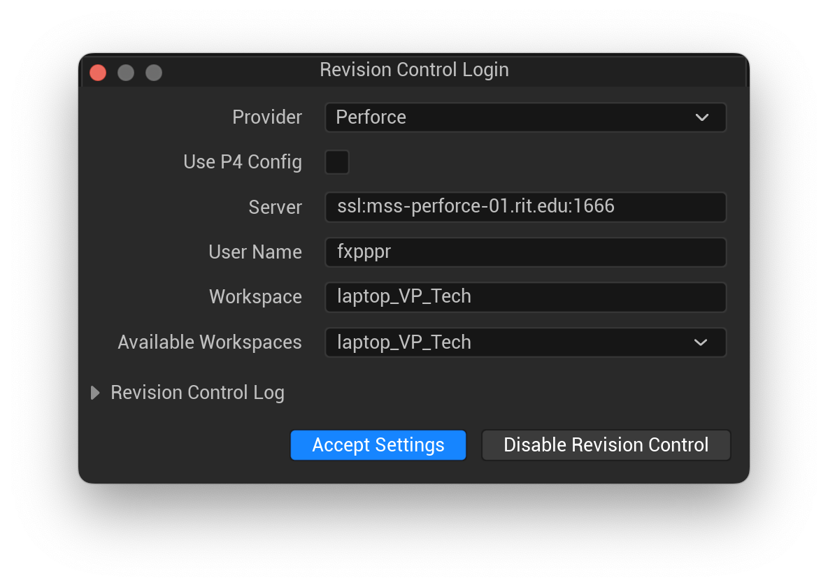 After you launch your project, you can set up Perforce integration. This is done in the Source Control