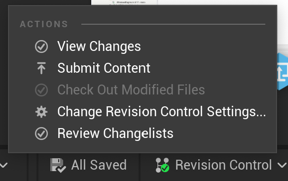 menu in Unreal. You can set up Perforce integration here as well as manage checking things in and out.